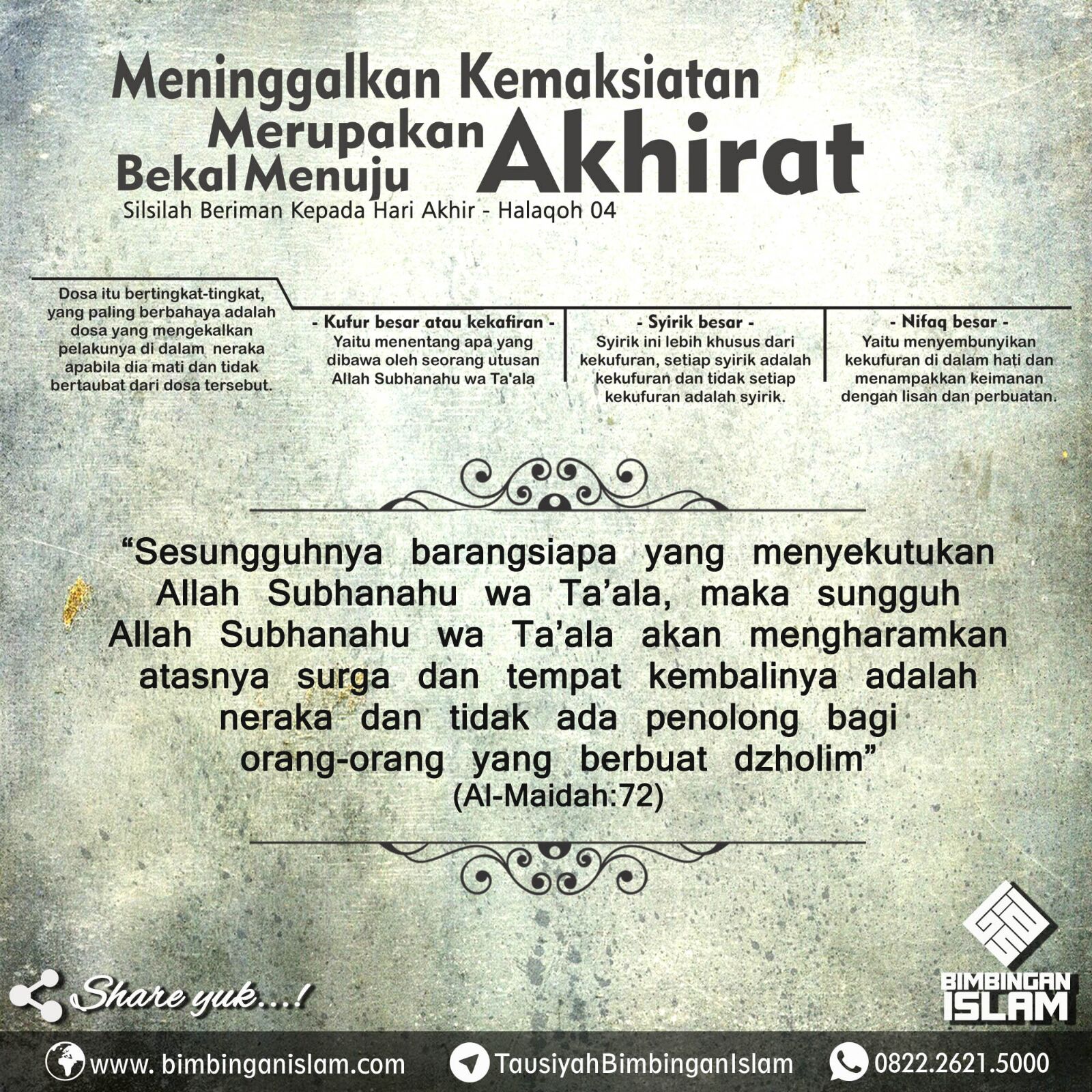 Halaqah yang ke-4 dari Silsilah Beriman Kepada Hari Akhir, adalah "Meninggalkan Kemaksiatan Merupakan Bekal Menuju Akhirat".